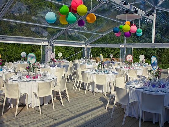 Nos tentes chapiteaux existent en bâches blanches translucides, blanches opaques, transparentes et noires.